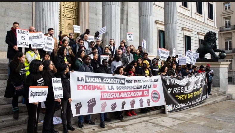 Centenars de manifestants van fer una vigília a la plaça de les Corts de Madrid, una visualització de la lluita, el treball i l’activisme de ni més ni menys que 906 organitzacions i col·lectius de migrants, entre les quals hi ha moltes entitats religioses. La Conferència Episcopal Espanyola (CEE) havia demanat al PSOE i al PP que avalessin aquesta tramitació. La mesura, segons els seus promotors, acabarà amb la vulneració dels drets fonamentals d’aquests migrants, que xifren al voltant de 500.000, i les barreres que els impedeix contribuir econòmicament i fiscalment a la societat, a més d’accedir a una feina digna, habitatge, salut o educació.