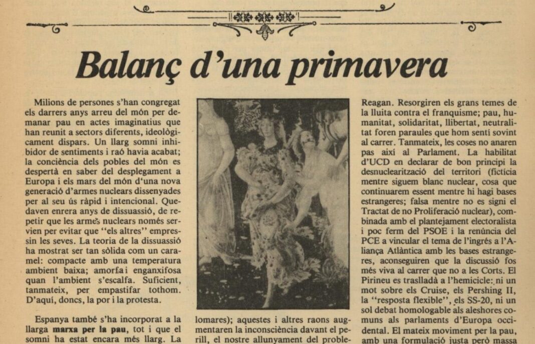 Fa onze anys Manolo Sacristán va fer una afirmació, recollida a El País, que ha resultat premonitòria. Va dir que la campanya empresa pel PSOE per capgirar la consciència anti-OTAN de la població espanyola de llavors acabaria sent moralment més corrosiva per a la ciutadania que la pertinença mateixa de l’Estat espanyol a l’aliança militar. Aquell article portava per títol, precisament, “OTAN cap a dintre”, i va ser, crec que pot dir-se així, el testament polític de Manolo Sacristán.